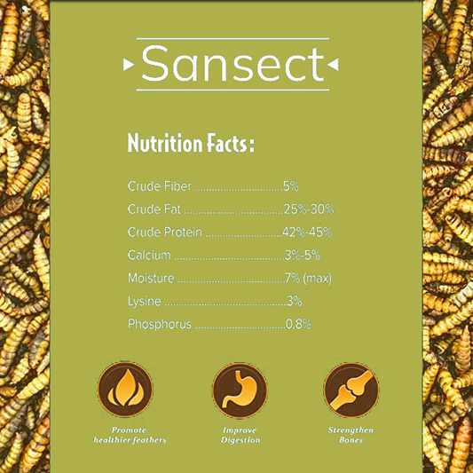 Sansect 40LB High Calcium Dried Black Soldier Fly Larvae for Chickens, Birds, Reptiles